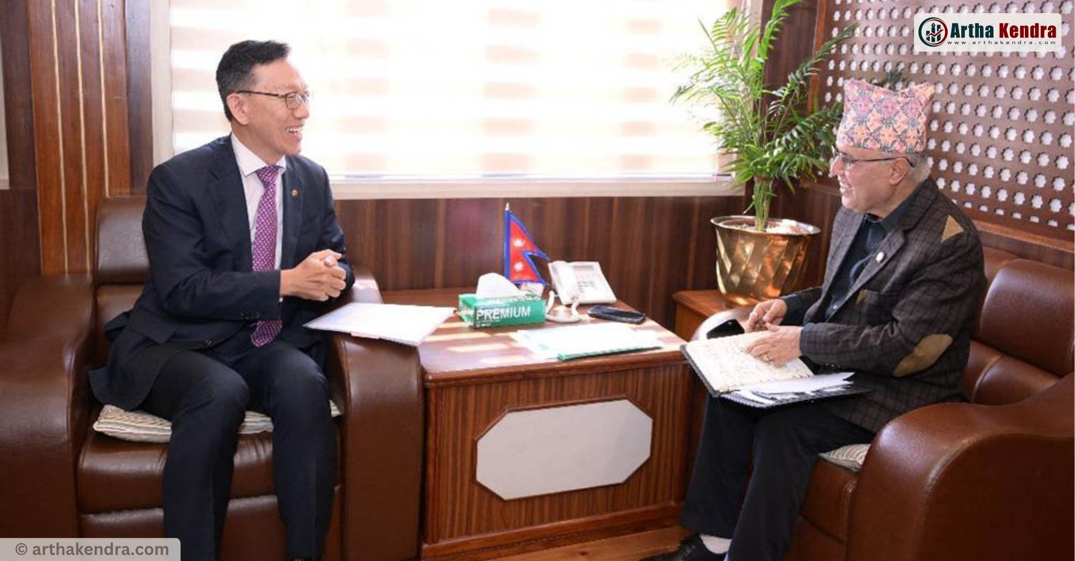 अर्थमन्त्री रामेश्वरप्रसाद खनाल र नेपालका लागि कोरिया गणतन्त्रका राजदूत पार्क ते यङबीच सोमबार सिंहदरबारस्थित अर्थ मन्त्रालयमा शिष्टाचार भेटवार्ता भएको छ ।