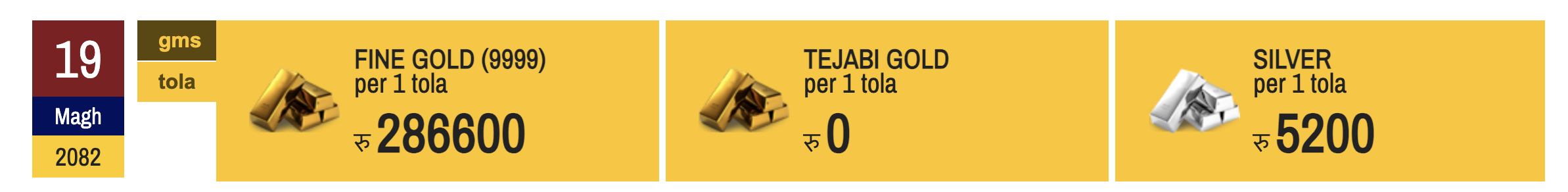 १९ माघ, काठमाडौं । नेपाली बजारमा आज सुनचाँदीको मुल्य घटेको छ ।