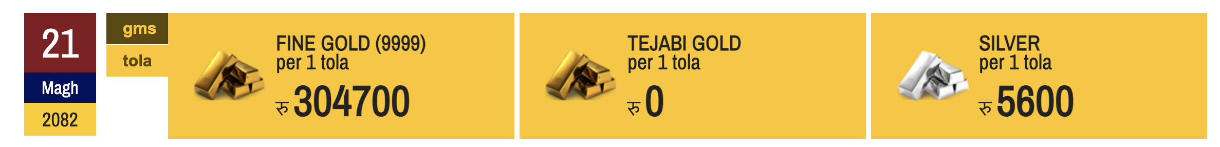 २१ माघ, काठमाडौं । नेपाली बजारमा आज सुनचाँदीको मुल्य बढेको छ ।