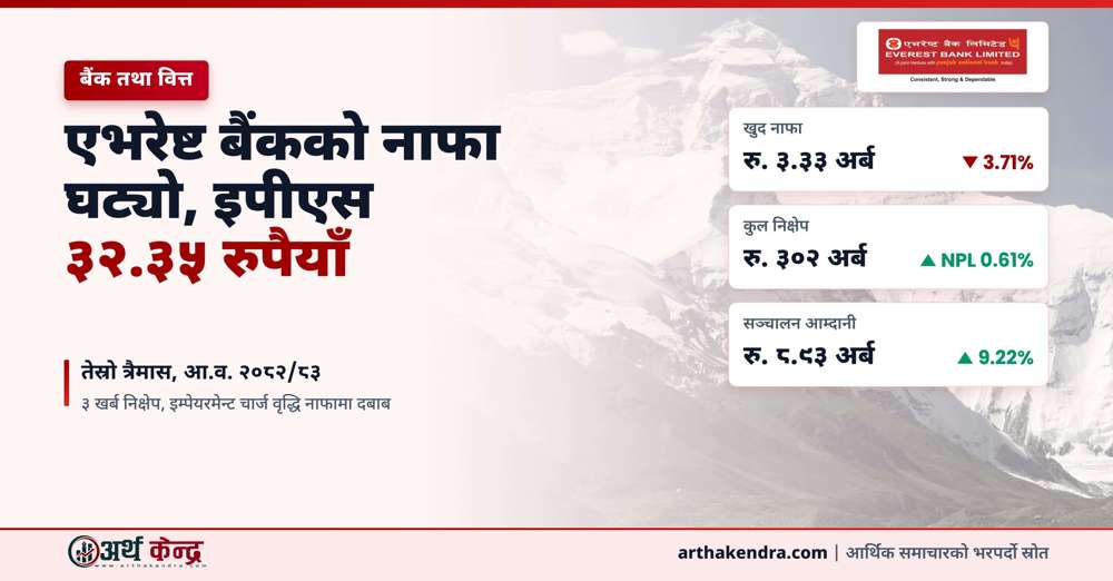 एभरेष्ट बैंकको खुद नाफा घट्यो, इपीएस ३२.३५ रुपैयाँ
