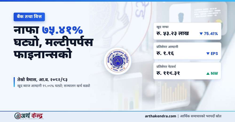 मल्टीपर्पस फाइनान्सको खुद नाफा ७५.४१% घट्यो, प्रतिसेयर आम्दानी कति